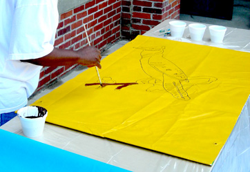 Once you have created the design as a line drawing, photocopy or digitally print it onto a transparency. Using an overhead projector, trace the design onto a banner using a permanent ink marking pen. Banners are free and supplied through our free banner workshops!